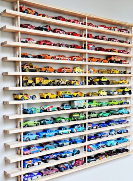 Next on the list, a toy car holder can transform your toy car collections into amazing wall décor.