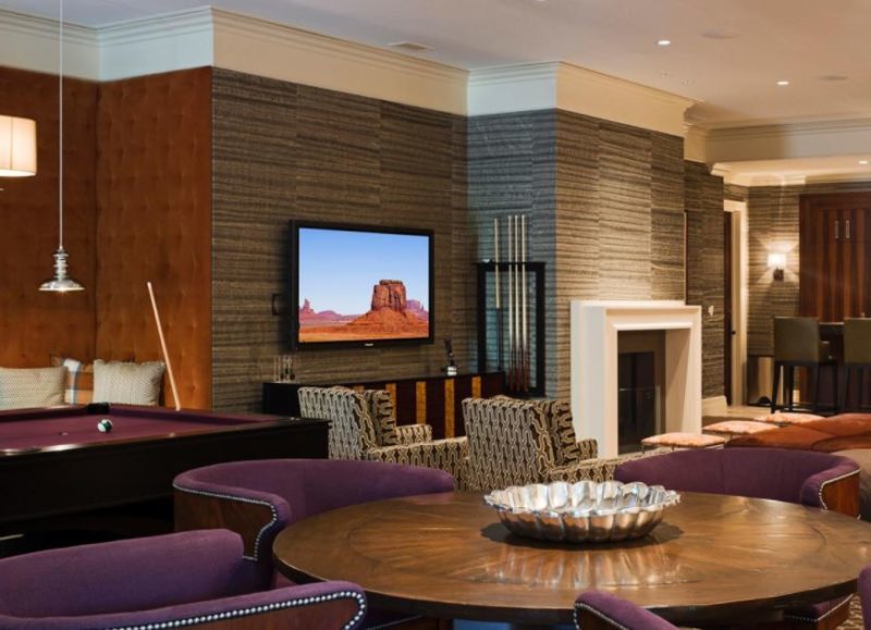 Family room. Spaces with pool tables call for a great deal of breathing space– at the minimum 5 feet– around the table.