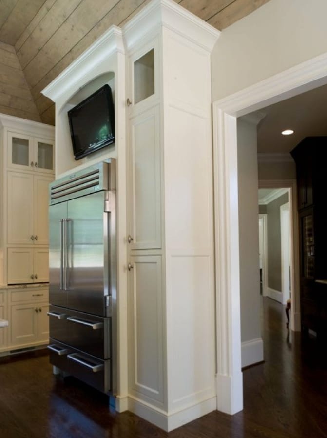 White Cabinet Above the Fridge with TV