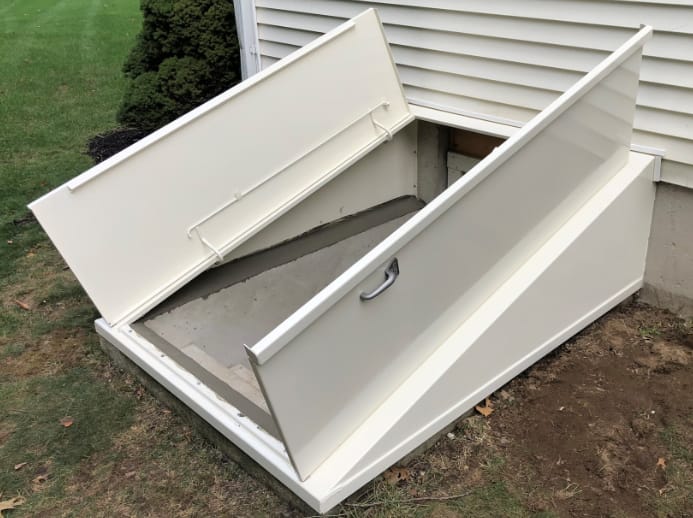 This cellar-door style is quite popular among homeowners. However, this hidden bulkhead door is only suitable if you have an entrance door above the basement bulkhead.