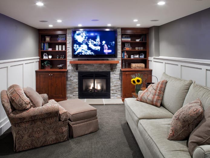 Most traditional basements have separated fireplaces and entertaining systems. If most basements today have a fireplace under the entertainment system, you may want to separate them by placing the entertainment system on the right or left side of the fireplace.