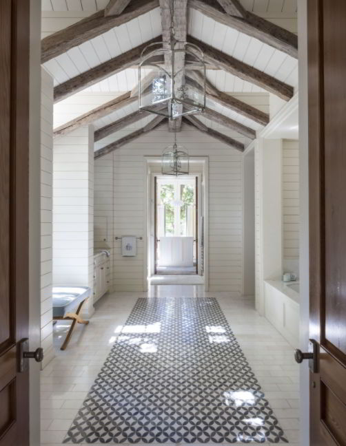 Vaulted, church-inspired ceiling has been a favorite since few decades ago. It is ideal not only for living room but also bathroom.