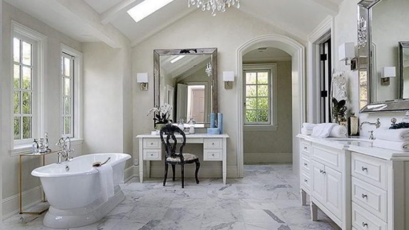 This ornament offers a dramatic effect especially if you have a tray ceiling adopted in the bathroom.