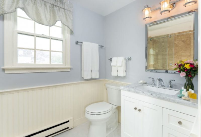 Aside from having beadboard wainscoting, you can install common wainscoting for your bathroom, such as this bathroom idea. The height of the wainscoting is higher than average. Consequently, it is most perfect for a bathroom with a tall ceiling.