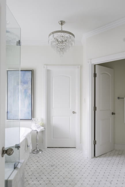 If you are interested in trimming your bathroom in white molding, you can consider having a full trim similar to this bathroom. This bathroom molding idea looks attractive and is perfect for transitional style.