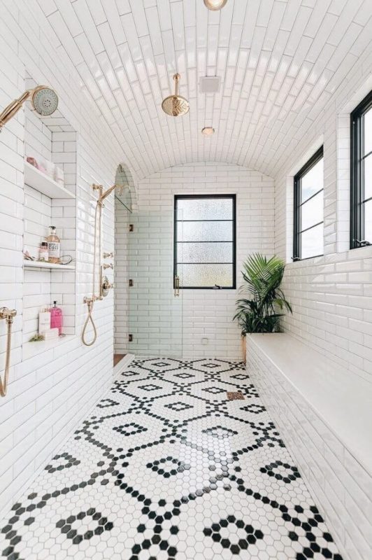 Aside from being attractive, this particular tile idea also meets your safety standard. The smaller tile pieces on this floor will add more friction. Therefore, you will less likely to slip on it.