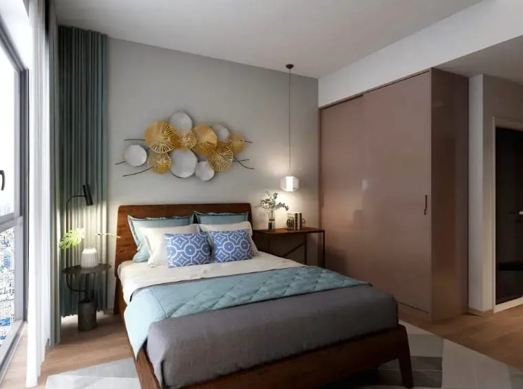 Placing a hanging lamp in the bedroom is not a bad idea. What’s more it it is one of the bedroom iridescent furniture ideas.