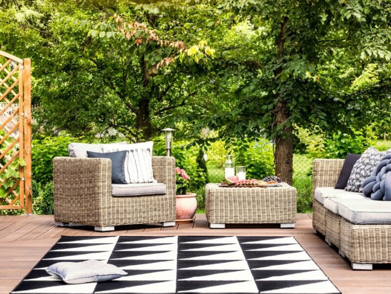 Monochromatic Rug on Wooden Decking