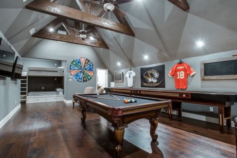 For an adult’s playroom, you can fill it with a pool table, a sofa, and galleries for your favorite sports team and/or jersey.