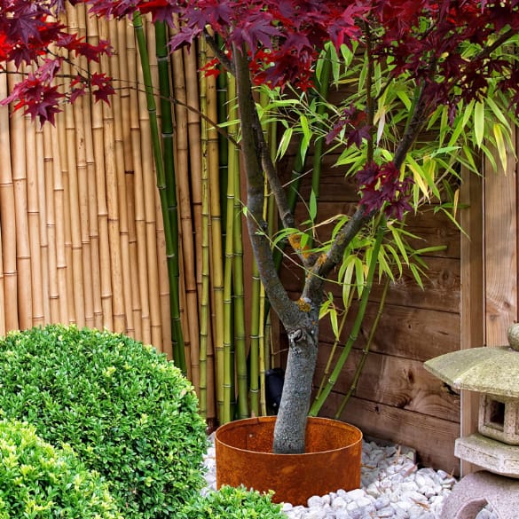 For example, bamboo and wooden walls will look cool with this iron ring in the middle of the pebbles.
