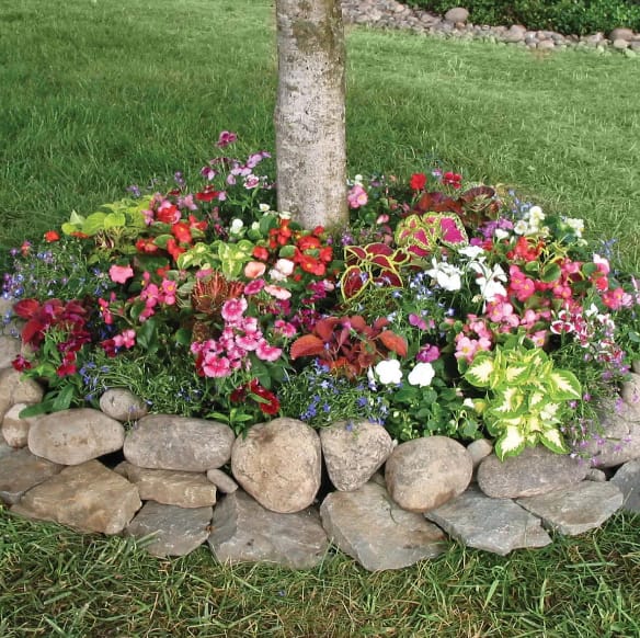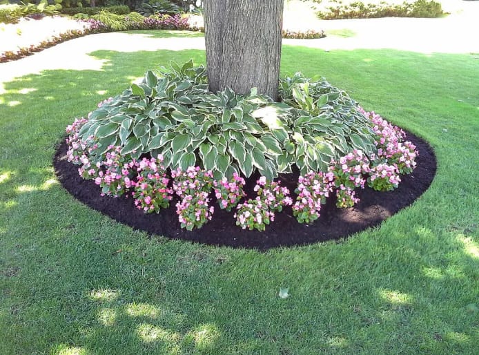 Some gardeners love to frame their trees with an iron ring before spreading small pebbles on the ground, outside the iron ring. This can be the most outstanding idea to consider to add variety to your garden.