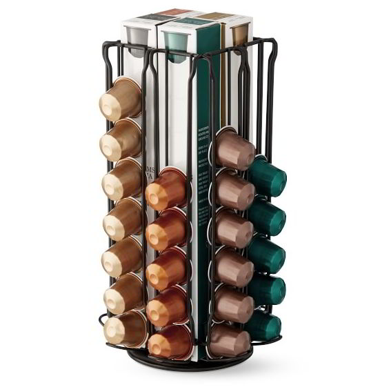 This stand is among fantastic coffee pod storage ideas for small kitchens. Despite its compact design, it offers an extra-large capacity for your favorite pods.