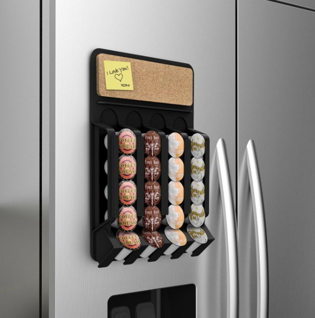 If you need quick access to your favorite coffee pods, then fridge mounted dispenser is surely for you.