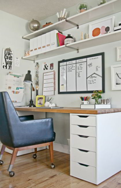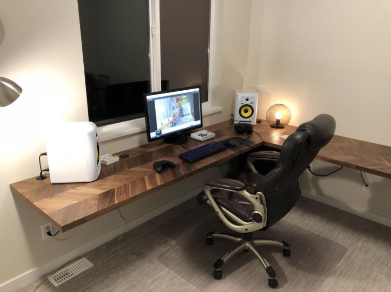Everyone’s needs are different. Not everyone needs a full-size workspace. Sometimes, all you need is a floating desk that occupies the corner like this.