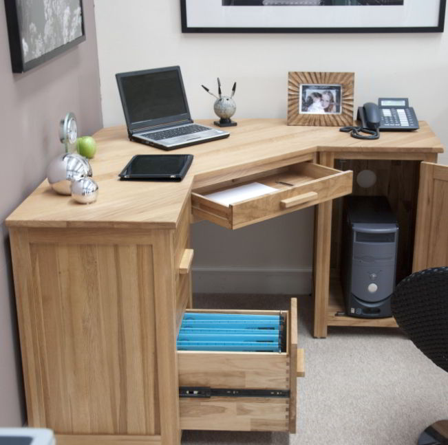 This L-shaped corner desk is straight to the point: it gives you a platform to work on. You can put everything on the table, literally.