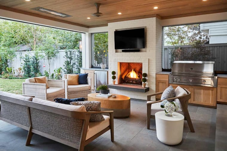 Watch your favorite TV show with your favorite people in your favorite spot. This covered patio incorporates technology with a flat TV installation over the fireplace. Featuring cozy sofas and arm chairs, it creates a perfect area to unwind after a long and exhausting day.