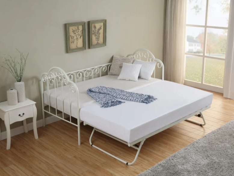 If you are looking for a simple daybed, this one is worth checking out. Featuring a white stainless steel frame, this daybed offers practicality, and versatility.