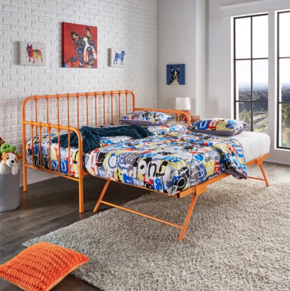 The stark contrast between the wood daybed frame and the metal trundle frame creates an interesting visual cue, making the daybed all the more appealing.