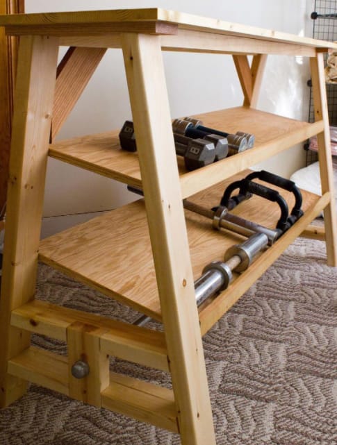 If you make it large enough, you can even store other items like weight plates or barbells on it, too. This might require more work to create, but it is a great space-saving solution.
