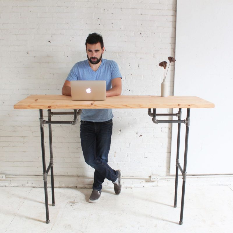 Complement your industrial-style home office with this pipe standing desk. The thick wood top is supported by industrial pipes to ensure its sturdiness.