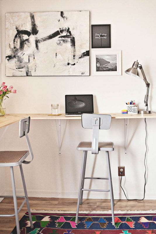 This desk is super easy to make, not to mention it offers visual interest to your workspace. Use the floor for other purpose to save a lot of space.
