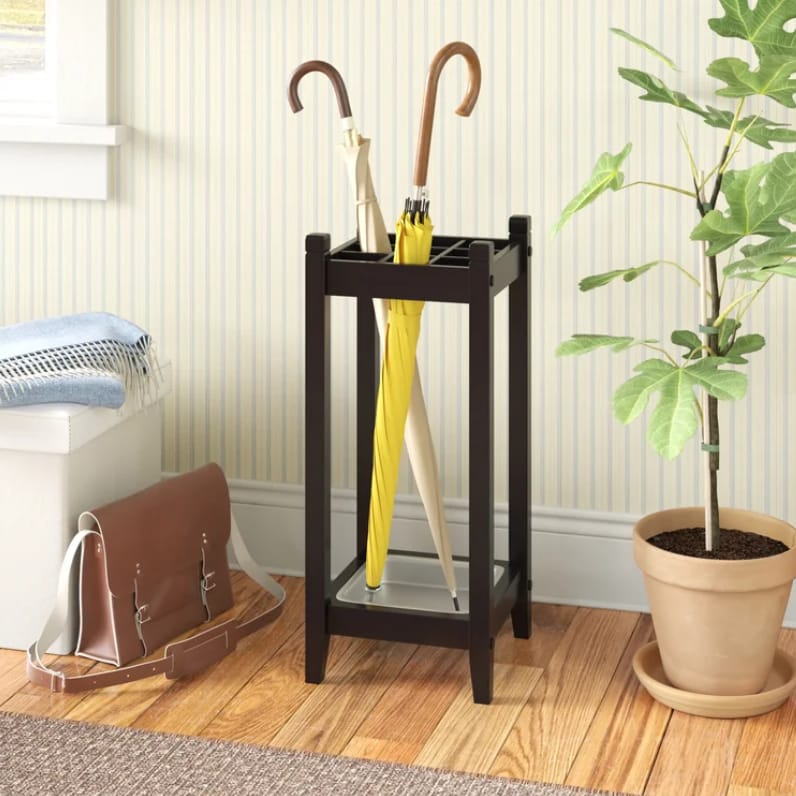 Upgrade your creativity with this solid wood umbrella stand. The free-standing umbrella holder is designed with a partition so that your umbrellas aren’t attached to one another. The most brilliant part is that it comes with a plastic tray that not only supports the umbrella but also retains water.