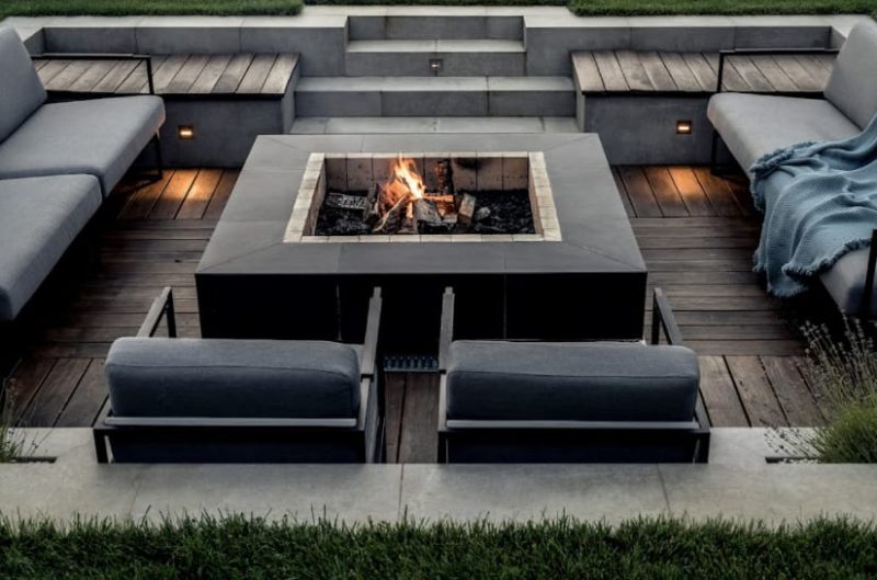 Sunken concrete seating can be an excellent feature for a modern home’s fire pit area. Its sleek and bare appearance can perfectly match the exterior design of most contemporary houses.