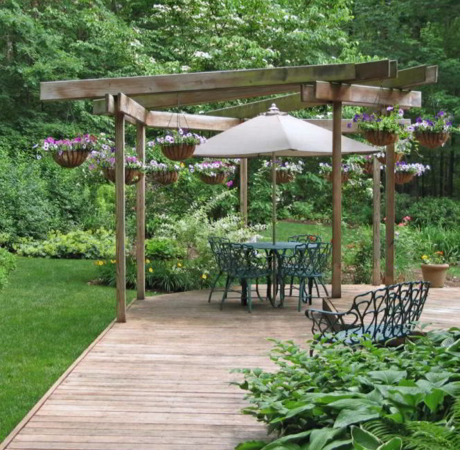 The back to nature nuance doesn’t only come from the green trees in the park, the addition of small potswill also add a beatiful impression to the deck.