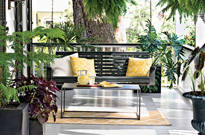 Swing Chair with Iron Coffee Table