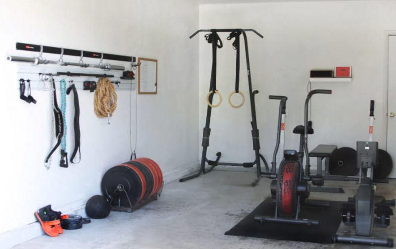 You can start small by adding padded floor mats, getting some basic equipment and storage, and, if there is enough room, installing mirrored wall panels.