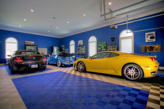 Who says blue is not matched with garage atmosphere. As you can see, blue can go well with garage. You just have to know how to combine it. This garage has a white ceiling and checkered flooring that is marked with blue for parking the vehicles.