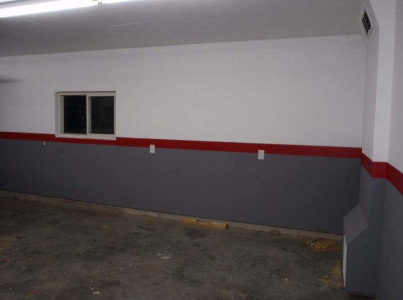 Thanks to the red line in the middle of the wall between the gray and white wall, it gives more interests to the garage design.