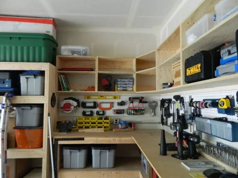 You may wanna know what pegboard is. It is a convenient means of maintaining mess off the garage floor. Pegboard is available in timber or steel too. You can use it as the element to cover the wall. It can also be used as the additional shelves for your workshop area.