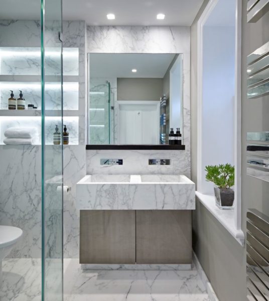 Everything about this bathroom design is contemporary. So, if you are in love with anything contemporary, this is the ideal design for your bathroom. It’s got stark geometric shapes that represent the whole contemporary pattern.