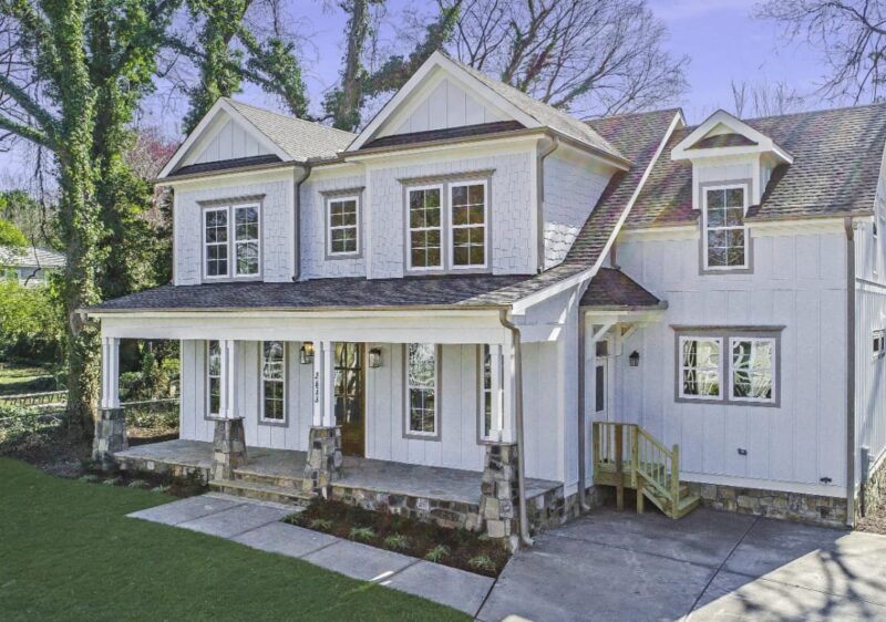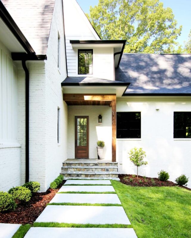 White and grey can work together in a home decor. The combination creates a classic and minimalist look to redefine your home’s curb appeal. As you can see in this photo, the farm house gets grey gutters and downspouts that create a nice contrast with the white walls.