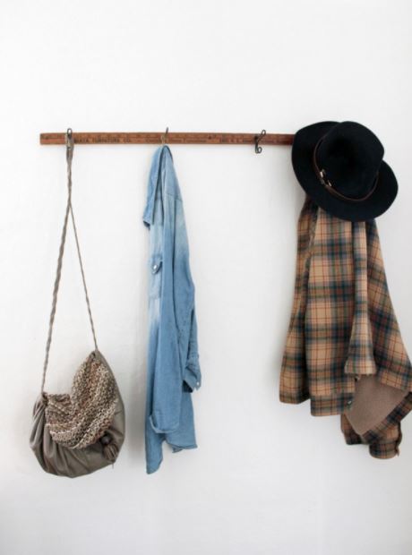 The arrangement of material is as simple as it’s seen. Just install the hook to the wall than to get it more festive, some hipster scarfs on each side and ladder wood on top.
