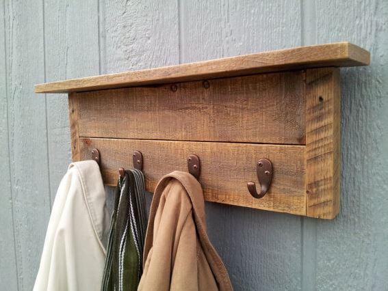 It looks so thematic and perfectly fit on the wall. Take a look at the grey plain wall. That’s what makes the hat rack looks outstanding. The rustic textures of the wood shine brighter with that base.