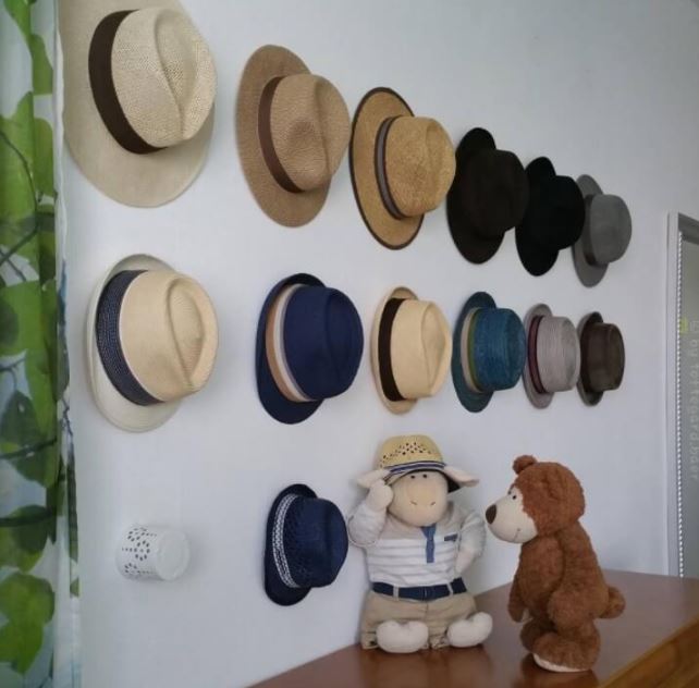 [su_note note_color=”#fefce4″]It does look good when all of the hats are on the wall. But, if you want to use one of them, one space would be empty. That’s the time when it doesn’t look good.[/su_note]