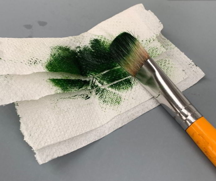 Rub it into the brush so the paint loosens. Grab a paper towel and use it to remove any excess. Once done, rinse the brush thoroughly.