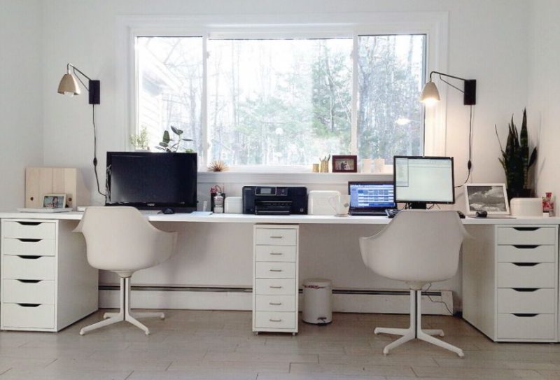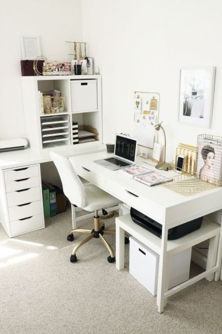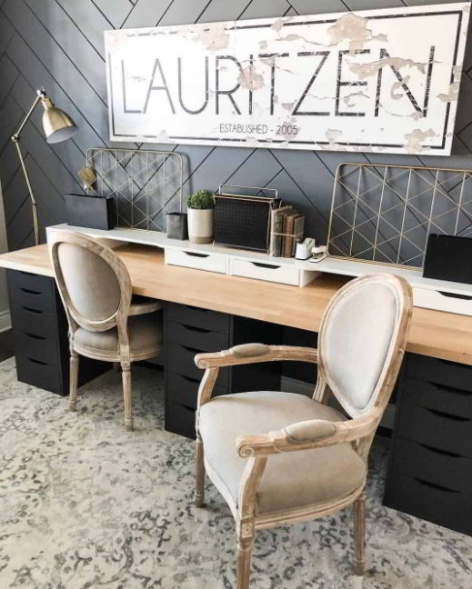 If you and your spouse both need a working desk at home, why not make one that you two can share? What you need are two Alex drawers and a long tabletop as the desk.
