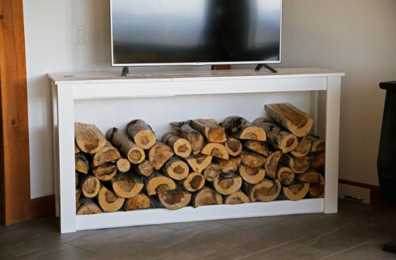 Another indoor firewood storage idea you might consider is the console table. At the top, you can place electronics such as television or radio.
