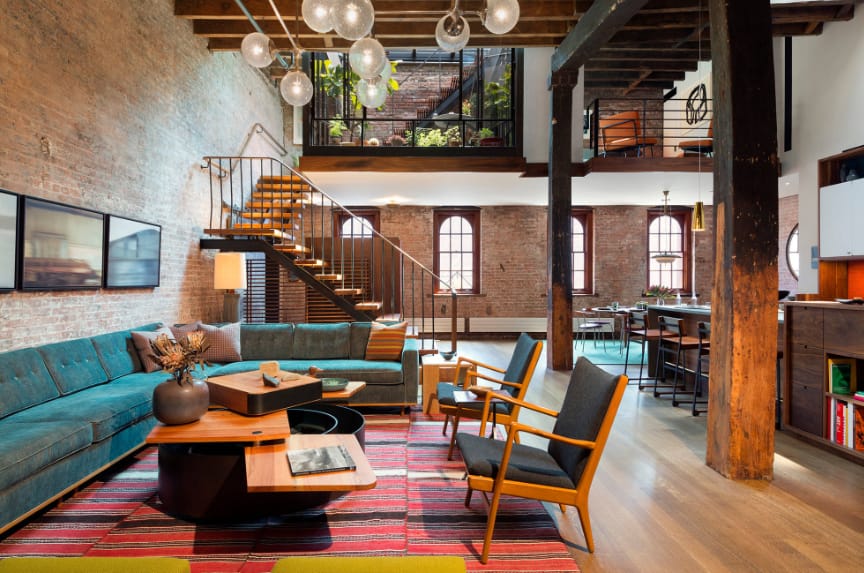Comfy Industrial Living Room with Unique Coffee Table
