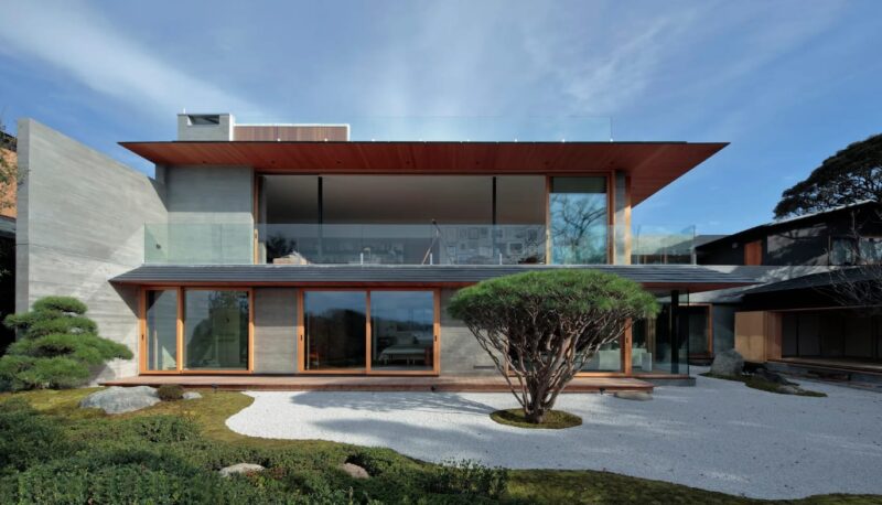 This is another designer’s photo that will inspire you if you opt for a Japanese-inspired modern house. Despite all the modern elements from huge glass windows to concrete wall, it maintains a slight Japanese look from the roofing and flooring.