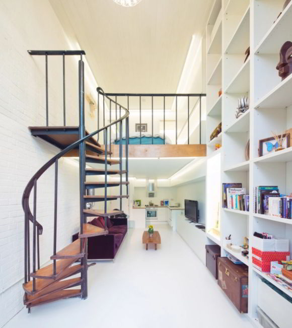 Spiral stairs can be a wonderful option to access the loft. Unfortunately, this kind of stairs needs enough space where you can mount the pole in the center of the stairs.