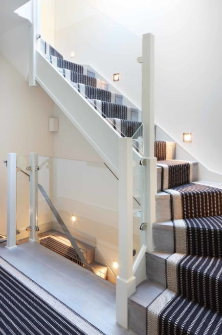 The presence of glass banisters is going to reflect the light. It works perfectly when it is combined with white surroundings.