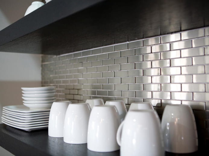 The rustic charm of wood is there but with a touch of modernity from the metal tiles. Metal tile backsplashes come in a variety of styles and colors. Regardless of your kitchen décor, you’ll find fitting metal backsplashes that complement it.