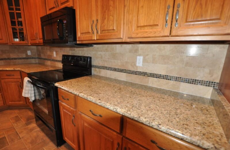 On top of these, a granite backsplash just looks good. There are lots of color and pattern options to choose from. It is shiny and reflective, too.