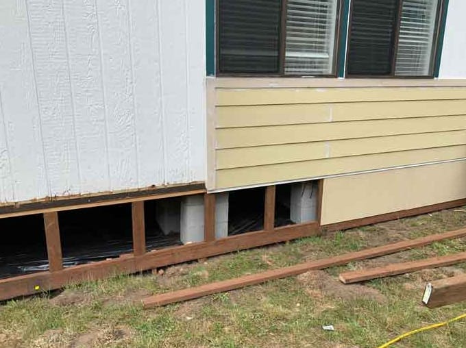 The house with open space underneath should use mobile home skirting. This is a solution to protect the area from animals that may harm the homeowners.