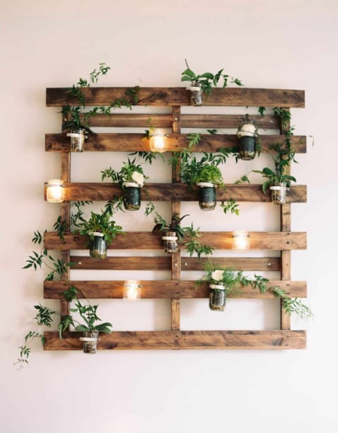 This small masterpiece is going to adorn your plain wall. Made of wooden pallet combined with decorative lights and artificial plants, this simple artwork complements your rustic or classic interior. Find it in local stores or put it into your list of DIY projects.