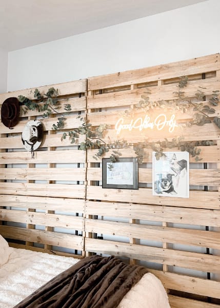 To upcycle wooden pallets into adorable wall decorations requires minimum woodworking skills. Start with the simple work. As you progress and your ability improves, feel free to upgrade your level. Or if you don’t have much time, simply find them in nearby stores or online.